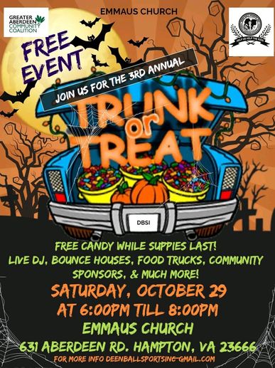 Partnered with Emmaus Church HRVA as they hosted three "Trunk or Treat" events. Obtained sponsorship funds from Uncle Nick's Meats and Rosie's for the events